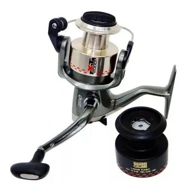 O corpo dos molinetes XT são de Grafite, mas conta com carretel em alumínio aliviado para realizar longos arremessos ou sistema Long Cast, além de ter um carretel extra em grafite.